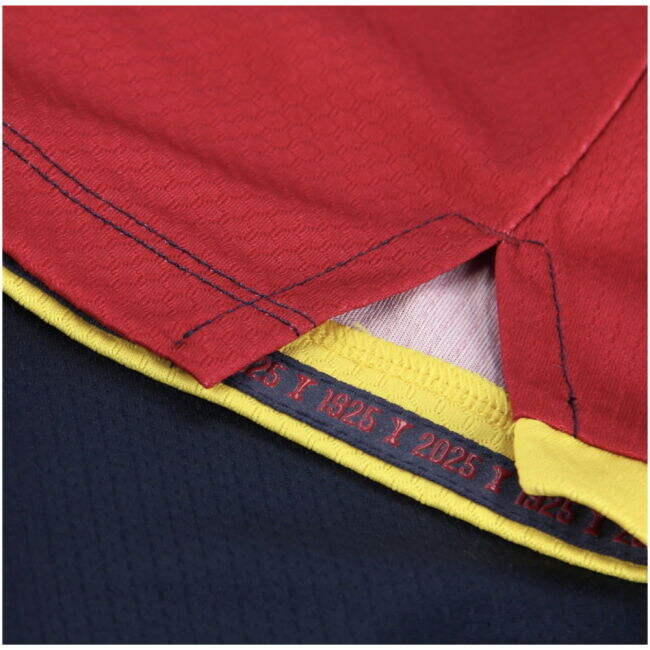 The Home 2024-2025 features the traditional four vertical red and blue bands embellished by the weave of the jaquard fabric, with crew neck and sleeve edges in knitwear. The back neck is customised with the club's colours on which the two figures 1925-2025 are printed in gold and, in the middle, the Scudetto cup and the number 100 to celebrate the 100th anniversary of the first Scudetto, won by Bologna in the 1924-25 season.