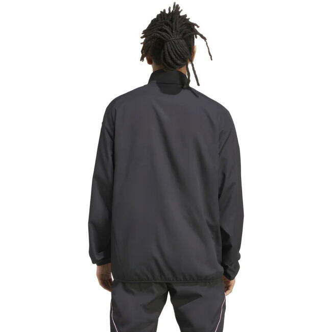 Stay sharp and show your Juventus pride with the 2025-2026 Presentation Jacket in Black. Worn by players during travel and media duties, this sleek, full-zip jacket combines lightweight comfort with standout style. Featuring the Juventus crest and Adidas logo in soft pastel tones, along with white shoulder stripes and subtle pink piping, it offers a modern look with club identity. Complete with a high collar, elastic cuffs, and zippered side pockets, this jacket is perfect for pre-match routines, training days, or casual streetwear. A must-have for true Bianconeri fans.